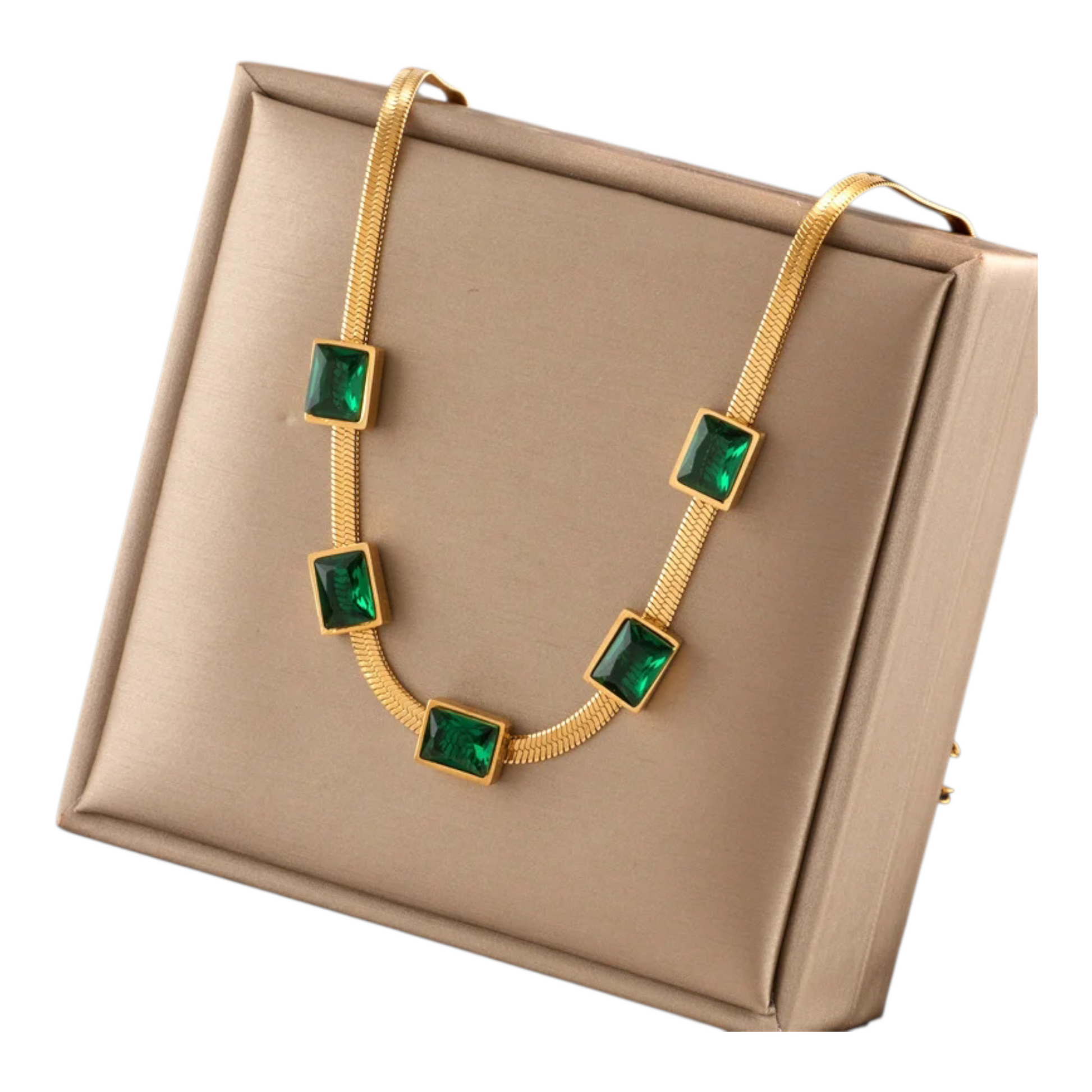 MATERIALE: acciaio inossidabile o acciaio inossidabile placcato oro con pietre color smeraldo