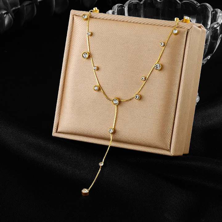 La Collana Sofia Punti Luce incarna l'eleganza senza tempo con il suo design a cascata girocollo a Y. Ogni brillante è sapientemente posizionato per creare un effetto galassia luminoso che valorizza il décolleté con raffinatezza. La delicatezza della lavorazione la rende la scelta ideale per occasioni speciali, conferendo un tocco di sofisticazione a qualsiasi look. Un gioiello che unisce maestria artigianale e bellezza pura.