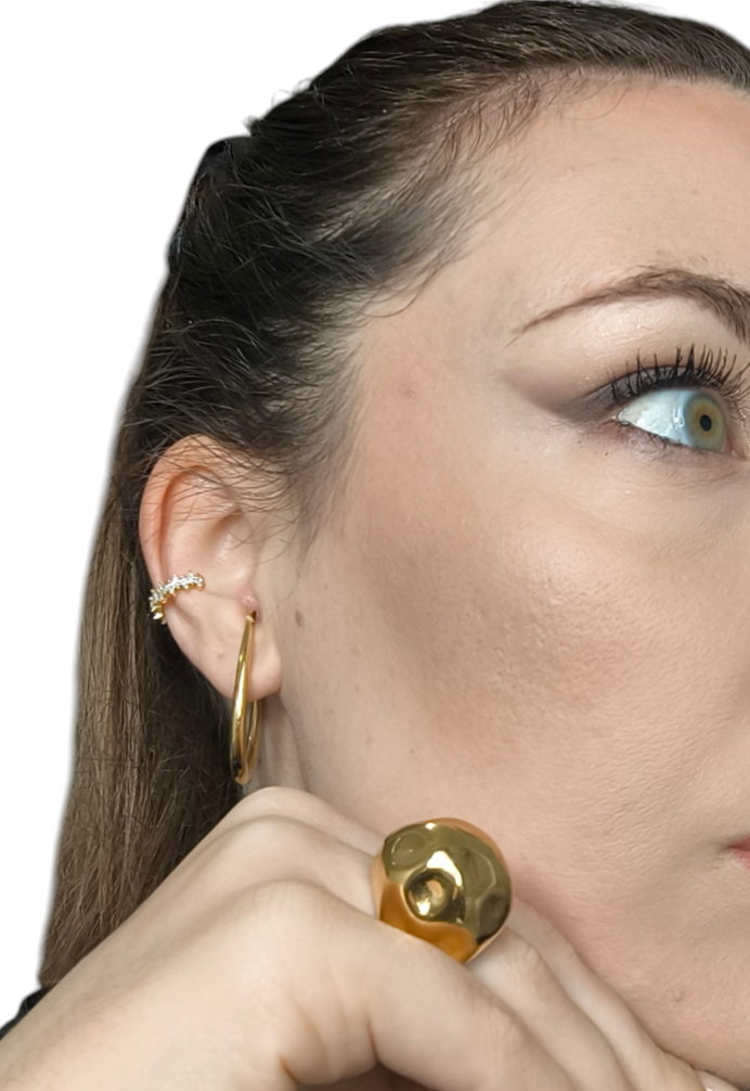 Questi Orecchini Big "U" sono l'accessorio perfetto per chi ama originalità ed eleganza. Grazie alla loro forma unica a U, sembrano scivolare delicatamente sull'orecchio, donando un tocco di leggerezza e raffinatezza. Ideali per un look etereo e glamour. Chiusura con farfallina.