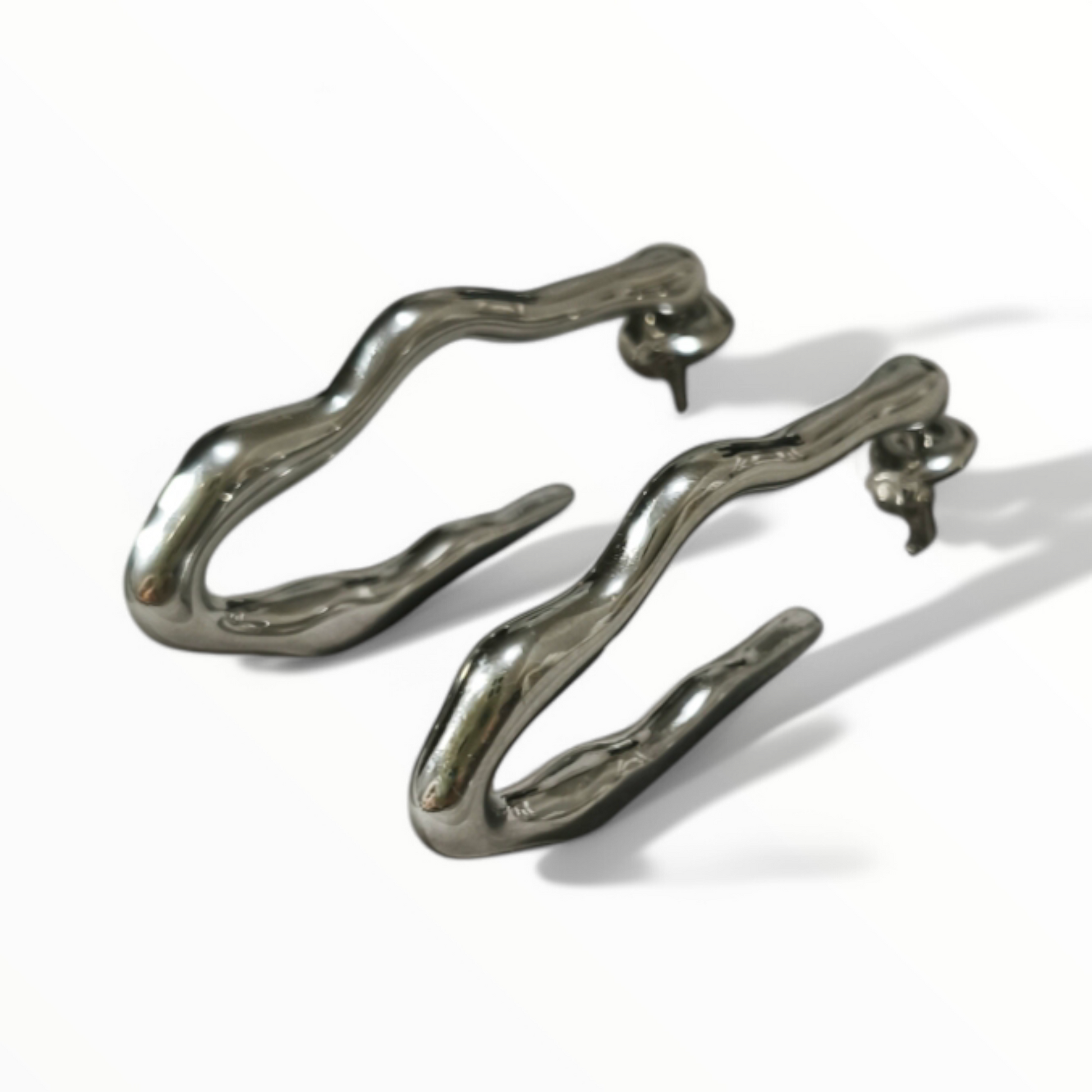 Questi orecchini cerchietto originali sono caratterizzati da un metallo che sembra fuso, creando un effetto unico e originale. Il cerchio non chiuso aggiunge un tocco inaspettato e moderno. Aggiungi un tocco di originalità ai tuoi outfit con questi orecchini.