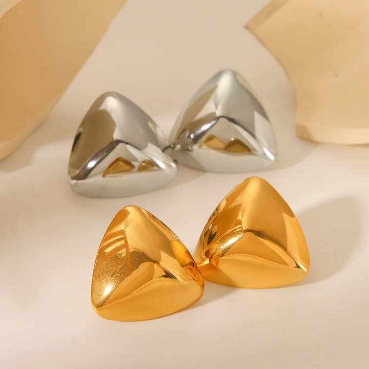 Orecchini a forma di triangolo piramidale che uniscono geometria audace e versatilità. Il design bold e minimalista li rende perfetti sia per l'uso quotidiano che per occasioni speciali, grazie alle proporzioni medie che garantiscono comfort e visibilità. La linea pulita e contemporanea si distingue per la sua unicità, offrendo un tocco di personalità sofisticata a qualsiasi look. Ideali per chi ricerca accessori che combinano semplicità estetica con carattere deciso.